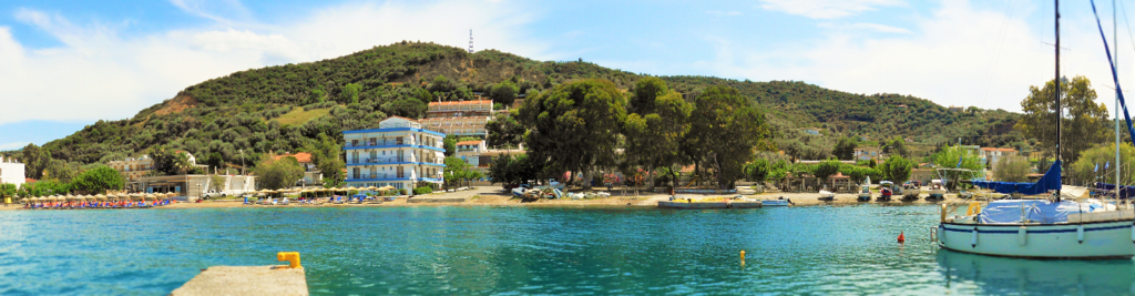 Na Skijatosu smo videli da nismo pogrešili što smo odseli na Eviji. Ovo malo ostrvo ima 20 kilometara obale sa plažama, ali je grad Skijatos, nekako previše užurban. Naši turisti uglavnom odsedaju u gradu, a gradskim prevozom idu na plaže. Nije to za nas… ali plaže Skijatosa su divne, a još iz perspektive koju smo mi imali – sa mora, izgledaju sjajno. Povratak na Eviju je bio jednako inspirativan.