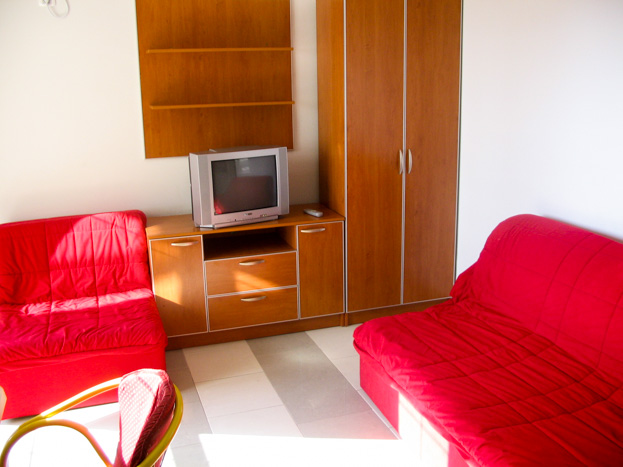 Apartmani Fontana – nalaze se 150m od mora, odmah iza hotela Obala. Raspolažu sa petokrevetnim apartmanima (35-40m²). Svaki apartman poseduje dnevni boravak sa trosedom i foteljom na razvlačenje, kao i spavaću sobu sa francuskim krevetom, kuhinju, kupatilo i terasu. Gostima je na raspolaganju klima uredjaj, TV sa kablovskim kanalima i fen za kosu.