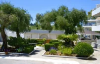 Plaža udaljena oko 1km je peskovito-šljunkovita, mestimično kamenita, sa blagim ulaskom u more, a suncobrani i ležaljke dostupni su uz doplatu.