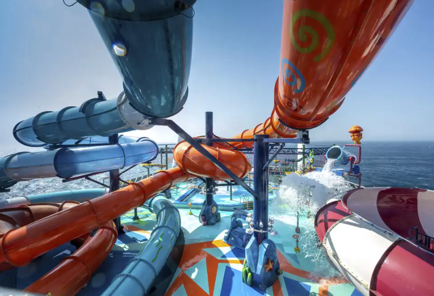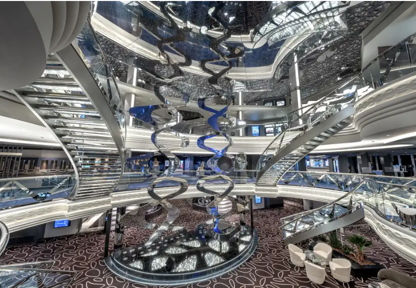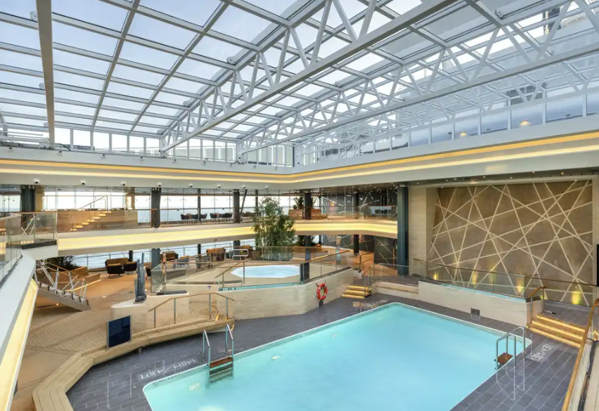 Sadržaji broda: 16 restorana, 17 barova, bioskop, wellness, fitnes sala, sauna, tursko kupatilo, jakuzzi kade, bazen, višenamenski sportski teren i staza za trčanje na otvorenom. teatar, casino, disko klub, deo za internet…