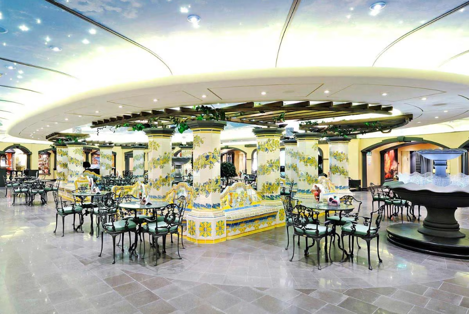 Sadržaji broda: restorani , barovi, wellness, fitnes sala, sauna, tursko kupatilo, masažne jacuzzi kade, bazene – uključujući i bazen za decu, sala za trening, teren za mini golf, staza za trčanje, pozorište, kazino, diskoteka, zabavni park za decu.