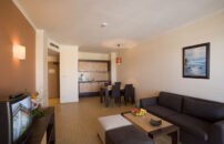 Sobe: Sve sobe obuhvataju TV sa satelitskim kanalima, telefon, klimu, kupatilo i balkon sa pogledom na park ili na more. Besplatan bežični internet dostupan je u svim prostorijama.