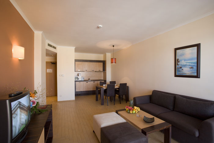 Lokacija: Hotel se nalazi na prvoj liniji u severnoj zoni Suncevog Brega, udaljen par koraka od mora. Akva park Action je udaljen 1,5 km od hotela, a Nesebar se nalazi na 10 minuta vožnje.
