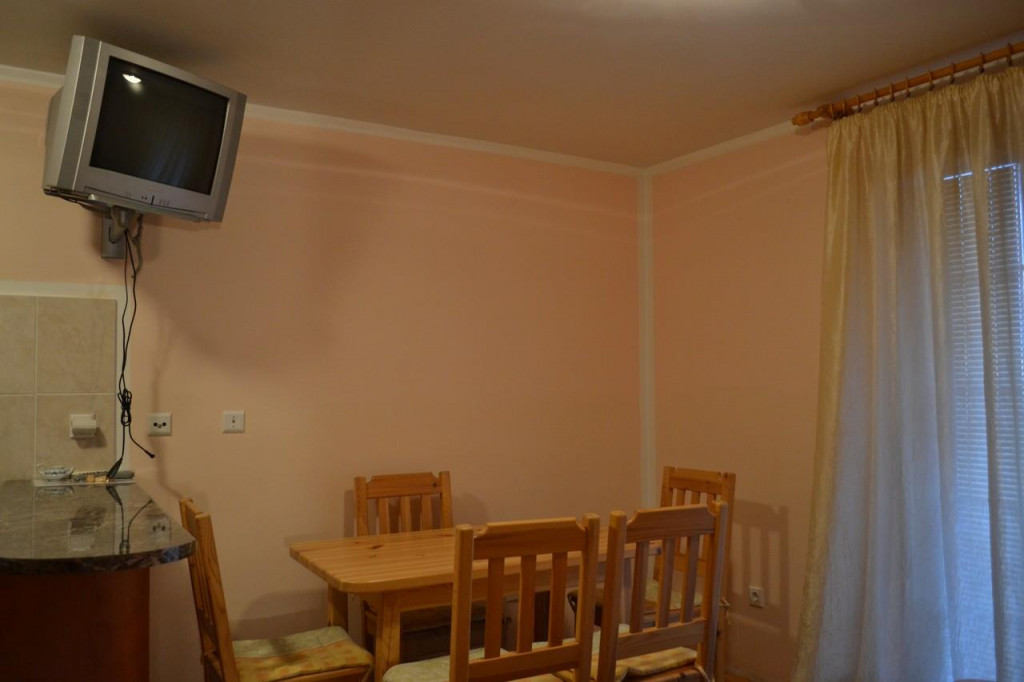 Apartman se sastoji od: dnevne sobe sa kuhinjom i trpezarijom, dvoseda na razvlačenje, (TV, kompletno opremljena kuhinja sa posuđem i belom tehnikom), trokrevetne spavaće sobe i kupatila.Apartman se može iznajmiti bez korišćenja polupansiona, dok je za goste koji koriste smeštaj u sobama, usluga na bazi polupansiona, doručak i večera.